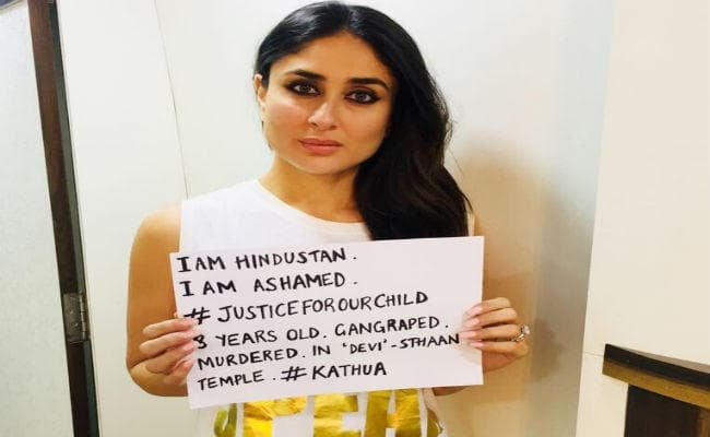 इसी सिलसिले में तीस साल की अभिनेत्री ने हाल में ट्विटर पर करीना की वह तस्वीर साझा की थी जिसमें वह एक तख्ती लेकर खड़ी हैं और जिसमें जम्मू कश्मीर के कठुआ जिले में सामूहिक बलात्कार-हत्या की शिकार नाबालिग लड़की को न्याय दिलाने की मांग कर रही थी. इसी पर कुछ धर्म के ठेकेदारों ने करीना को ट्रोल करना शुरू किया.