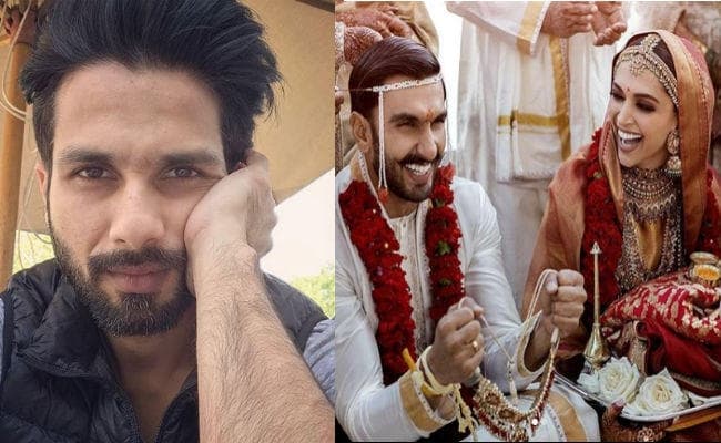 दीपिका पादुकोण और रणवीर सिंह विवाह बंधन में बंध गये हैं. अब फैंस उनके मुंबई लौटने का इंतजार कर रहे हैं. दोनों ने इटली के लेक कोमो में पहले कोंकणी और फिर सिंधी रीति-रिवाज से शादी की. खबरों की मानें तो रविवार को दोनों मुंबई लौट आयेंगे. सोशल मीडिया पर दोनों की शादी की तसवीरें तेजी से वायरल हो रही है. इस नयी जोड़ी को लगातार बधाईयां मिल रही है. इसी बीच रणवीर सिंह और दीपिका पादुकोण के फिल्म ‘पद्मावत’ के कोस्टार शाहिद कपूर ने खास तरीके से बधाई दी है.