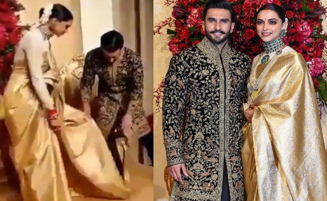 VIDEO: दीपिका पादुकोण के ”पल्लू” को संवारकर रणवीर ने दी फ्लाइंग किस, फिर कह दी ये बात