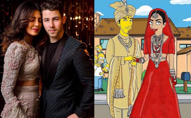 प्रियंका ने दिल के एक इमोजी के साथ तस्वीर के कैप्शन में हैशटैग सिम्पसन्स लिखा. हालांकि लाल जोड़े में प्रियंका के त्वचा का रंग पीला दिखाया गया जबकि ईसाई शादी में उनकी त्वचा का रंग हल्का भूरा दिखाया गया है.