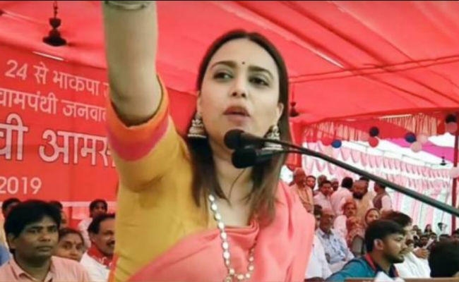 बॉलीवुड अभिनेत्री स्वरा भास्कर इनदिनों बिहार के बेगूसराय में हैं. वे यहां भाकपा उम्मीदवार कन्हैया कुमार के लिए चुनाव प्रचार करने पहुंची हैं. स्वरा भास्कर पहली बार चुनावी मंच पर भाषण देते हुए नजर आ रही हैं. अभिनेत्री ने अपने सोशल मीडिया पर कन्हैया कुमार के सपोर्ट में चुनावी रैली के दौरान भाषण देते हुए एक वीडियो शेयर किया है. इस वीडियो में स्वरा भास्कर पूरे जोश के साथ जनसभा को संबोधित करती नजर आ रही हैं.