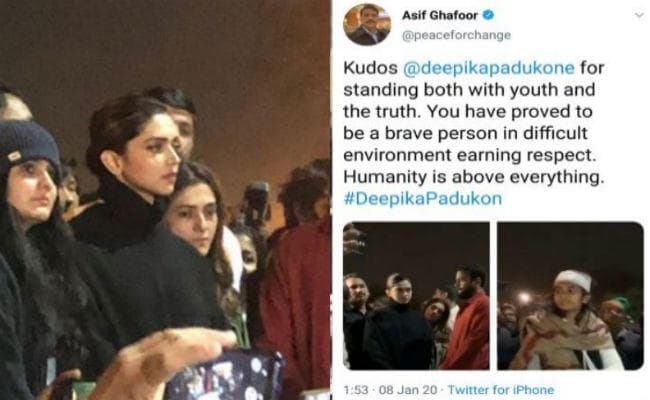 उन्होंने अब डिलीट किए जा चुके ट्वीट में कहा, ‘‘ नौजवानों और सच के साथ खड़े होने के लिए दीपिका पादुकोण की तारीफ की जानी चाहिए. आपने मुश्किल वक्त में साबित किया है कि आप एक बहादुर व्यक्ति हैं. आपने इज़्ज़त हासिल की है. इंसानियत सब चीज़ों से ऊपर है.’