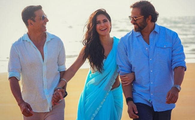 कैटरीना ने सिल्वर स्लीवलेस ब्लाउज के साथ ब्लू कलर की साड़ी पहनी है. उन्होंने ओपन हेयर के साथ अपने लुक को कंप्लीट किया है. वहीं रोहित ने डार्क ब्लू कलर की शर्ट पहनी है और अक्षय पेल ब्लू कलर की शर्ट पहनी है. बता दें कि इस फिल्म में अक्षय और कैटरीना के अलावा अजय देवगन, रणवीर सिंह, नीना गुप्ता, गुलशन ग्रोवर और सिकंदर खेर भी नजर आयेंगे.