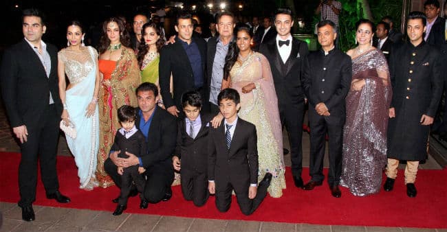 पार्टी में पूरा खान परिवार मौजूद था. बॉलीवुड के ट्रेजेडी किंग दिलीप कुमार पत्नी सायरा बानो के साथ पार्टी में शामिल हुये. वाहिदा रहमान भी इस पार्टी में शामिल हुई. सलमान की एक्स गर्लफ्रेंड संगीता बिजलानी भी रिसेप्शन में शामिल हुईं. अभिनेत्री श्रद्धा कपूर, सिद्धार्थ मल्होत्रा, गोविंदा, तुषार कपूर, रितेश देशमुख, जेनेलिया डिसूजा भी रेड कार्पेट पर नजर आए. अभिनेता संजय दत्त की पत्नी मान्यता अपने दोनों बच्चों के साथ अर्पिता खान की रिसेप्शन पार्टी में पहुंची.