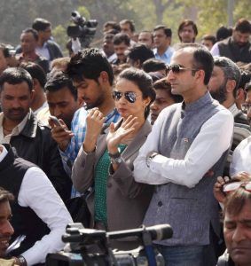नयी दिल्ली: बालीवुड की अनेक हस्तियां मुख्यमंत्री के रुप में अरविंद केजरीवाल के शपथ ग्रहण समारोह को देखने के लिए आज ऐतिहासिक रामलीला मैदान पहुंचीं.अभिनेत्री गुल पनाग और अभिनेता जावेद जाफरी शपथ ग्रहण समारोह में उपस्थित थे. गुल पनाग चंडीगढ से आम आदमी पार्टी के उम्मीदवार के रुप में लोकसभा चुनाव लडी थीं, जबकि जावेद जाफरी ने लखनउ से आप पार्टी की तरफ से लोकसभा के लिए किस्मत आजमायी थी.
