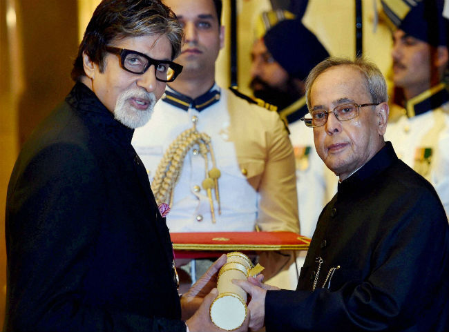हिंदी सिनेमा के महानायक अमिताभ बच्चन को आज नयी दिल्ली में भारत के दूसरे सर्वोच्च नागरिक पुरस्कार पद्म विभूषण से सम्मानित किया गया. इस खुशी के मौके पर उनका पूरा परिवार उनके साथ मौजूद था. 71 वर्षीय अमिताभ बच्चन आज भी निरंतर काम कर रहे हैं. यह पुरस्कार फिल्म जगत में उनके महत्वपूर्ण योगदान के लिए दिया गया. उन्होंने अपने इस सफर में कई उतार-चढ़ाव देखें लेकिन किसी भी परिस्थिति में हार नहीं मानी और आगे बढ़ते गये.उनका जीवन बहुत सारे आम लोगों के लिए प्रेरक है.