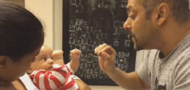 अपनी मम्मी अर्पिता खान शर्मा की गोद में बैठे आहिल मामा के पंच का जवाब पंच से ही दे रहे हैं और गाना सुनकर मुस्कुरा रहे हैं. सलमान और आहिल की इससे पहले भी कई तस्वीरें सामने आ चुकी है.