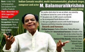 Mahan shastriya gayak M. Balamuralikrishna ji aaj hamare bich nahi rahe ,ye dukhad vaarta sunkar mujhe bahut (cont) https://t.co/XeJz3cRK0L