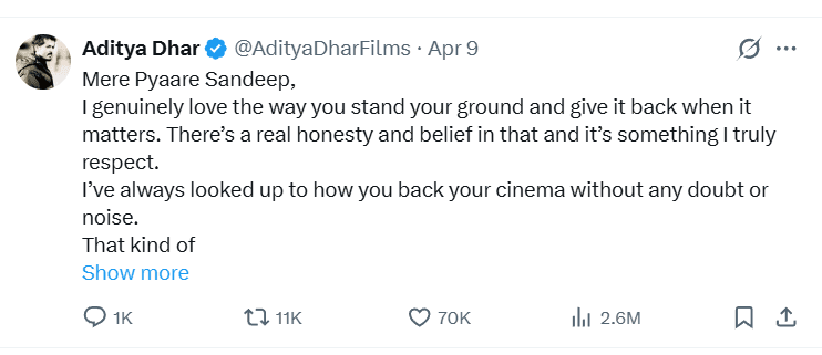 — Sandeep Reddy Vanga (@imvangasandeep) April 9, 2026