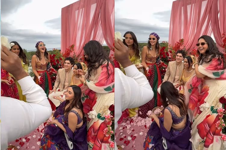 हाल ही में आलिया भट्ट कांस फिल्म फेस्टिवल में नजर आई, जहां उन्होंने अपने लुक और चार्म से लोगों का दिल जीत लिया. आलिया ने कांस में एक से बढ़कर एक आउटफिट कैरी किया था, जिनसे फैंस की नजरें हटी नहीं. इस बीच आलिया का लेटेस्ट वीडियो सोशल मीडिया पर वायरल हो रहा है. एक्ट्रेस अपनी क्लोज फ्रेंड तान्या साहा गुप्ता और डेविड एंजेलोव की शादी का जश्न मनाने के लिए स्पेन में है. इस समारोह का वीडियो सामने आया है. वीडियो में वह स्टाइलिश फ्यूजन आउटफिट में दिखी. एक्ट्रेस ने पारंपरिक लहंगा पहना है. इसके साथ उन्होंने अपने लुक को बैंडाना से स्टाइल किया था और सन ग्लासेस भी लगाया था. उनका ये स्टाइल काफी शानदार लग रहा है. आलिया के साथ वीडियो में उनकी बीएफएफ आकांक्षा रंजन कपूर भी नजर आई.