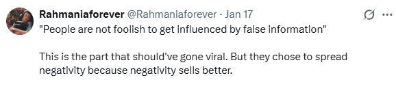 रहमान ने किसी का नाम नहीं लिया और न ही किसी पर सीधा आरोप लगाया. लेकिन उनके इस बयान को कई लोगों ने धर्म से जोड़ दिया. इसके बाद सोशल मीडिया पर बहस शुरू हो गई कि क्या रहमान सिर्फ अपना अनुभव बता रहे थे या फिर काम न मिलने की वजह को कम्यूनल सोच से जोड़ रहे थे.