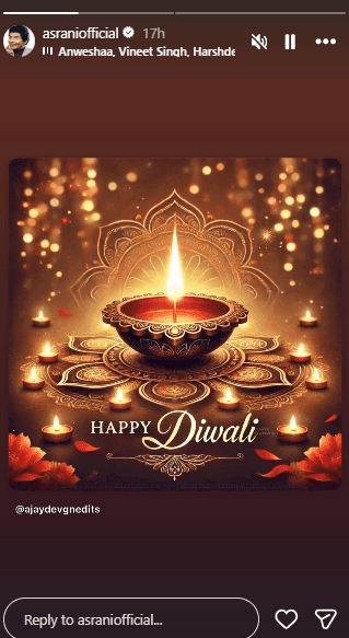 असरानी ने अपने निधन से पहले अपने इंस्टाग्राम पर दीवाली को लेकर एक पोस्ट किया था. इस पोस्ट में उन्होंने सभी को दीवाली की शुभकामनाएं दी थी. ये पोस्ट अब सोशल मीडिया पर वायरल हो रहा है.