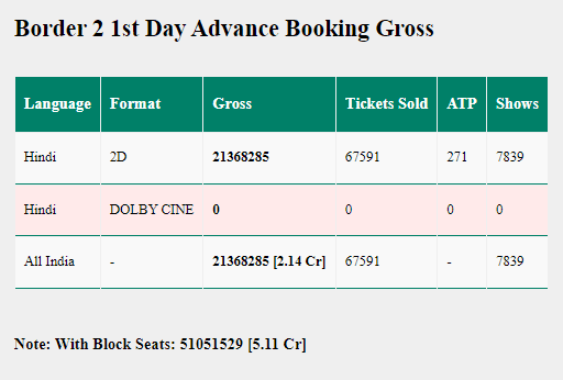 बॉर्डर 2 एडवांस बुकिंग अपडेट