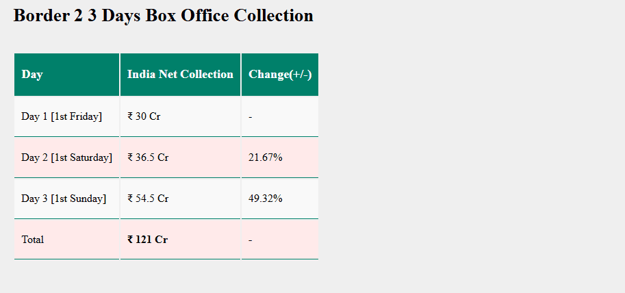 - Border 2 Box Office Collection Day 3: 54.5 करोड़ रुपये