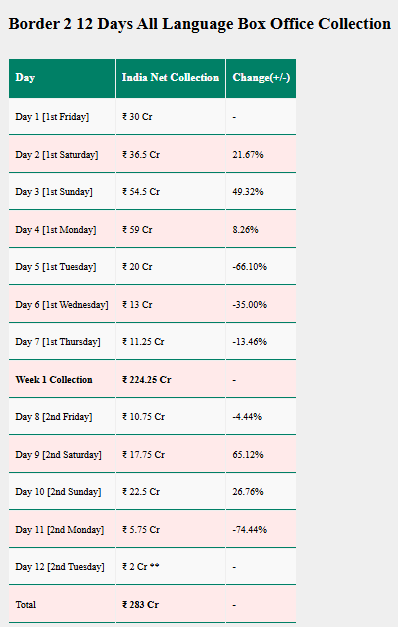 Border 2 Box Office Collection Day 12