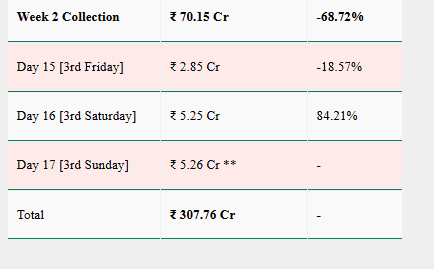 फिल्म के 17वें दिन की मॉर्निंग ऑक्यूपेंसी के आंकड़े अभी सामने नहीं आए हैं, लेकिन ट्रेड एक्सपर्ट्स का मानना है कि वीकेंड का फायदा फिल्म को आगे भी मिलता रहेगा.