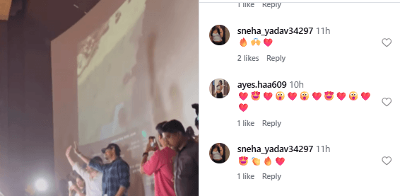 विरल भयानी ने अपने इंस्टाग्राम पर एक वीडियो पोस्ट किया है. वीडियो में दिख रहा कि गेयटी गैलेक्सी में जब सनी देओल पहुंचे तो फैंस खुशी से उनको चियर करने लगे. उनके साथ अहान शेट्टी भी थे. वीडियो में दिख रहा है कि अहान और सनी ने अपना हाथ हिलाकर वहां मौजूद दर्शकों को शुक्रिया कहा. वीडियो पर यूजर्स दिल और हार्ट वाले इमोजी बना रहे हैं.