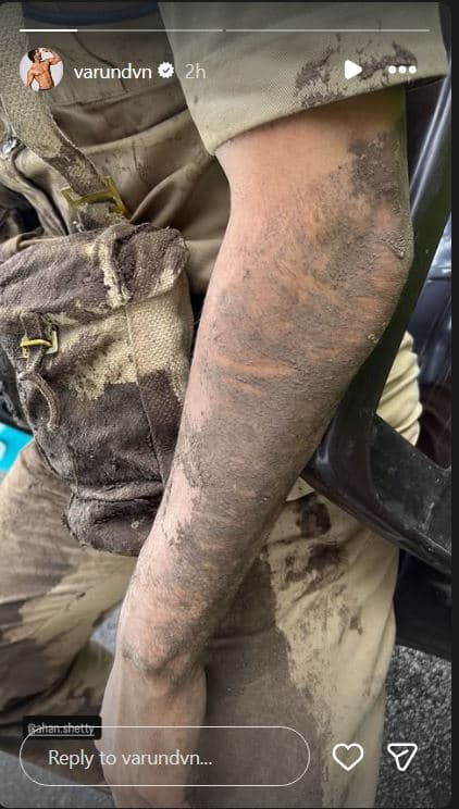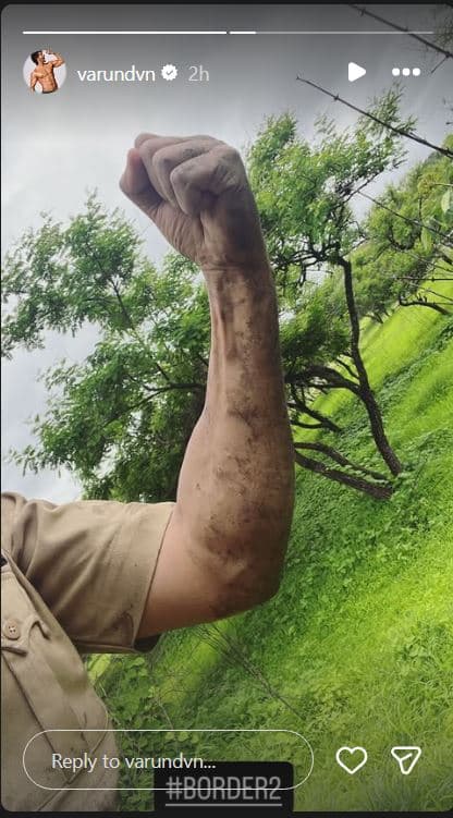 पुणे में बॉर्डर 2 की शूटिंग फिर से शुरू होने के साथ ही देशभक्ति का जोश और बढ़ गया है. बहुप्रतीक्षित सीक्वल में मुख्य भूमिका निभा रहे वरुण धवन ने इंस्टाग्राम पर सेट से पर्दे के पीछे की कुछ झलकियां साझा की. एक तस्वीर में सह-कलाकार अहान शेट्टी का हाथ कीचड़ में सना हुआ था, जो सीमा पर सैनिकों के वास्तविक चित्रण का एक शानदार प्रतीक है. वरुण ने कीचड़ में सने अपने हाथ की भी ऐसी ही एक तस्वीर साझा की, जिससे फैंस कहने लगे कि फिल्म वाकई में धांसू होने वाली है.