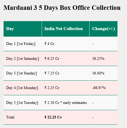 ‘मर्दानी 3’ का पांचवें दिन का कलेक्शन