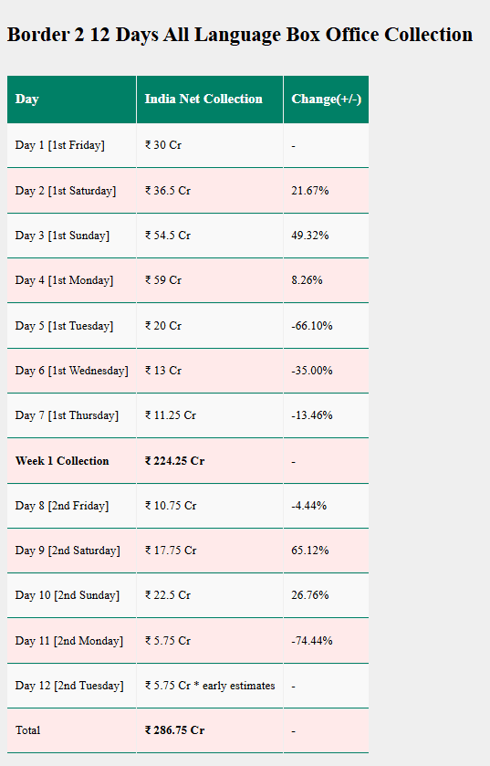 ‘बॉर्डर 2’ का 12वें दिन का हाल