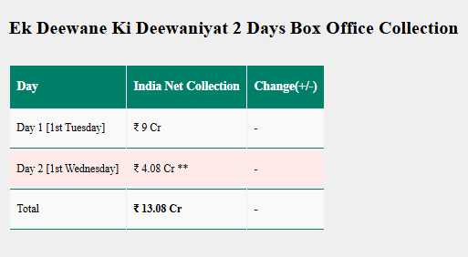एक दीवाने की दीवानीयत बॉक्स ऑफिस कलेक्शन डे 2