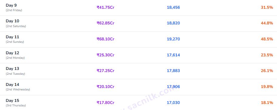 19 मार्च को रिलीज हुई इस फिल्म ने शुरुआती दिनों से ही बॉक्स ऑफिस पर अपना दबदबा बनाए रखा है. हालांकि तीसरे गुरुवार यानी 15वें दिन कमाई में हल्की गिरावट दर्ज की गई, लेकिन इसके बावजूद फिल्म ने शानदार आंकड़ा छुआ. सैकनिल्क की अर्ली रिपोर्ट के मुताबिक, फिल्म ने 15वें दिन 17.80 करोड़ रुपये का नेट कलेक्शन किया.