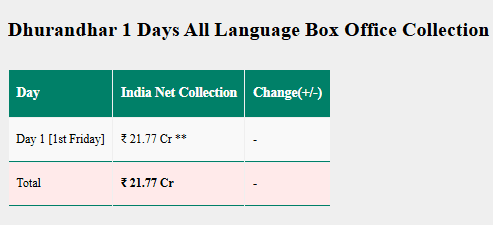 धुरंधर ने ओपनिंग डे पर डबल डिजिट कमाई कर ली है. Sacnilk की रिपोर्ट के अनुसार, फिल्म रात 8 बजे तक 21.77 करोड़ कमा चुकी है. नाईट शोज के बाद इनमें और बढ़त हो सकती है.