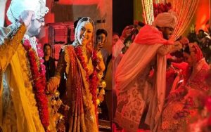 हंसिका मोटवानी की ये ड्रीमी वेडिंग की तसवीरें और वीडियो सोशल मीडिया पर वायरल हो रहे है. इस वीडियो में उनके भाई ‘फूलों की चादर’ लिए हुए है और वो लाल लहंगा पहनकर एंट्री करती दिख रही है. हंसिका अपने चुनरी से अपने चेहरे को ढके दिख रही है. वहीं, वरमाला के दौरान आतिशबाजी का भी इंतजाम किया गया था. एक वीडियो में, हंसिका और सोहेल पति-पत्नी के रूप में समारोह के बाद हाथ पकड़े नजर आए.
