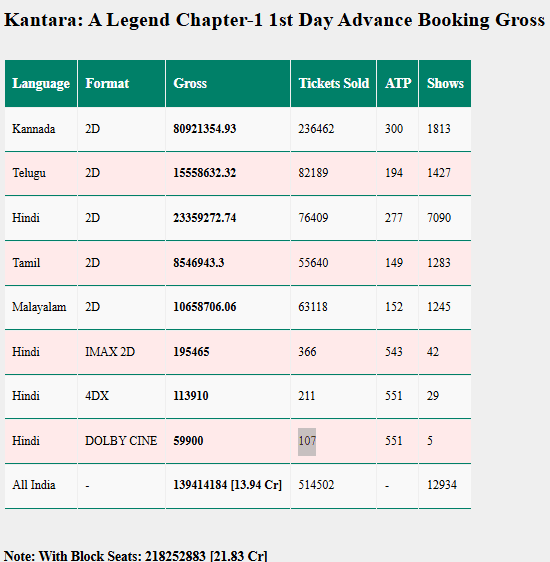 कांतारा: चैप्टर 1 की एडवांस बुकिंग रिपोर्ट