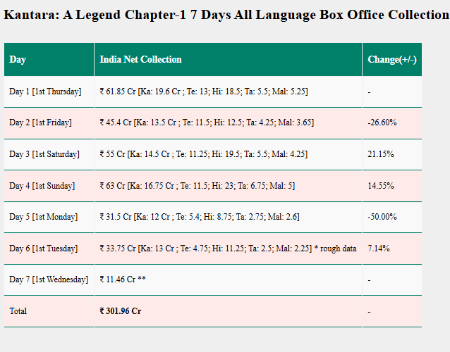 Kantara Chapter 1 Box Office Collection Day 7: ऋषभ शेट्टी की फिल्म ने सिर्फ सात दिनों में 300 करोड़ का आंकड़ा पार कर नया इतिहास रच दिया. जानिए डे-वाइज कमाई, फिल्म की कहानी और अगले माइलस्टोन पर अपडेट.