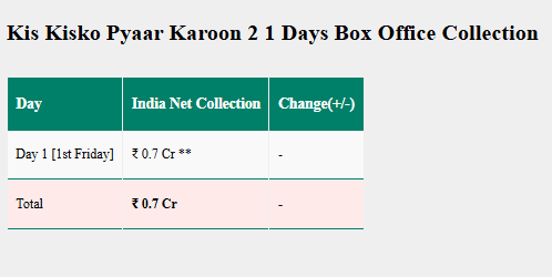 Sacnilk की शुरुआती रिपोर्ट के मुताबिक, ‘किस किसको प्यार करूं 2’ ने शाम 5 बजे तक लगभग 0.7 करोड़ रुपये की कमाई कर ली थी. ये शुरुआती आंकड़े हैं और रात के शो के बाद कुल कलेक्शन में बढ़ोतरी संभव है.