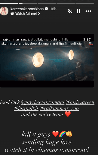 करीना कपूर ने अपने इंस्टाग्राम स्टोरी पर फिल्म ‘मालिक’ का ट्रेलर शेयर किया है और लिखा है, किल इट गाइज. ढेर सारा प्यार भेज रही हूं और मूवी को सिनेमाघरों में देखिए. साथ ही उन्होंने राजकुमार राव और पूरी टीम को टैग करते हुए गुड लक लिखा है. मीडिया रिपोर्ट्स की मानें तो फिल्म का बजट 54 करोड़ रुपये है. ऐसे में मूवी को अपनी लागत निकालने में अच्छा प्रदर्शन करना होगा. जबकि कई रिपोर्ट्स में बताया जा रहा है कि ओपनिंग डे पर फिल्म 3-4 करोड़ का कलेक्शन ही कर पाएगी.