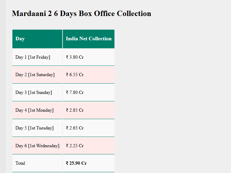 - Mardaani 3 Box Office Day 5 (पहला मंगलवार): 2.6 करोड़