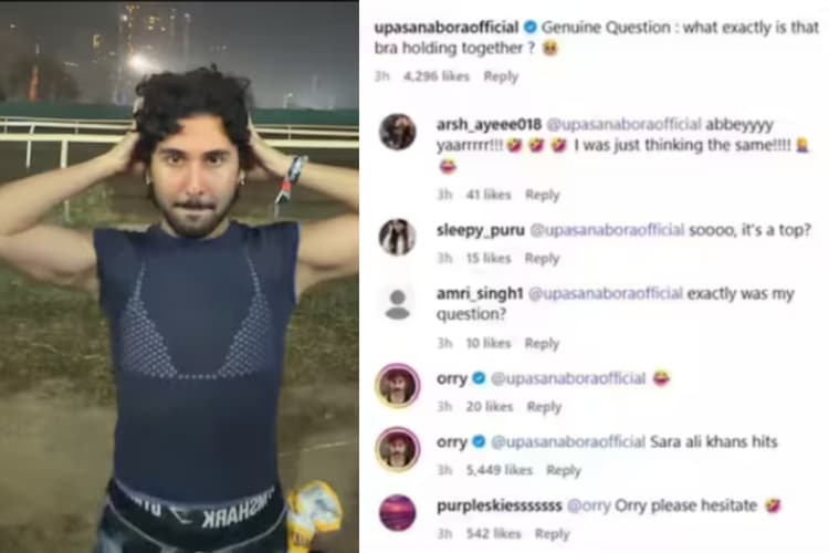 सोमवार, 26 जनवरी को ओरी ने एक रील शेयर की, जिसमें वह बड़े ग्राउंड में शूट करते दिखे. वीडियो में उन्होंने डेनिम के साथ ब्रा और ट्रांसपेरेंट टी-शर्ट पहनी थी. इसी वीडियो पर एक यूजर ने पूछा कि ब्रा ने आखिर क्या होल्ड किया है. इस पर ओरी ने रिप्लाई किया, “सारा अली खान की हिट फिल्में.” इस कमेंट ने इंटरनेट पर हड़कंप मचा दिया.
