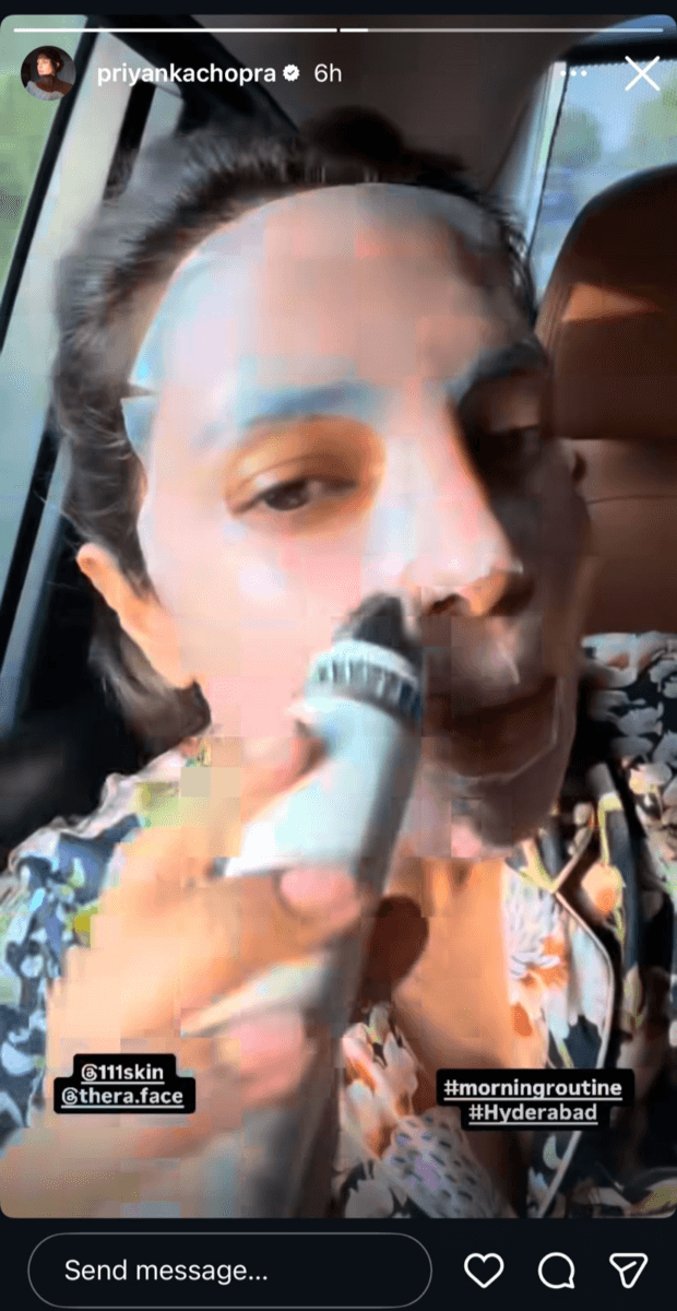 प्रियंका चोपड़ा ने इंस्टाग्राम स्टोरी के जरिए अपनी मॉर्निंग रूटीन की एक झलक दिखाई. वीडियो में वह शूट पर जाने से पहले अपनी त्वचा की देखभाल करती नजर आईं. उन्होंने हाइड्रेटिंग फेस मास्क का इस्तेमाल करते हुए ‘गुड मॉर्निंग’ कहते हुए अपने दिन की शुरुआत दिखाई.