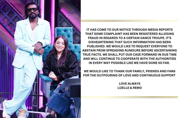 रेमो डिसूजा ने आगे कहा, ‘ये जानकार मुझे बहुत दुख हुआ, काफी निराशाजनक है कि ऐसी जानकारी प्रकाशित हुई है. हम सभी से अनुरोध करना चाहेंगे कि वे सही तथ्यों का पता लगाने से पहले अफवाहें फैलाने से बचें. हम उचित समय पर अपना मामला आगे बढ़ाएंगे और अधिकारियों के साथ हर संभव तरीके से सहयोग करने की भी कोशिश करेंगे, जैसा कि हमने अब तक किया है. हम अपने परिवार, दोस्तों और प्रशंसकों को उनके प्यार और निरंतर समर्थन के लिए धन्यवाद देना चाहते हैं. ये सब अफवाहें, इसमें कोई सच्चाई नहीं है. लिजेल और रेमो.’