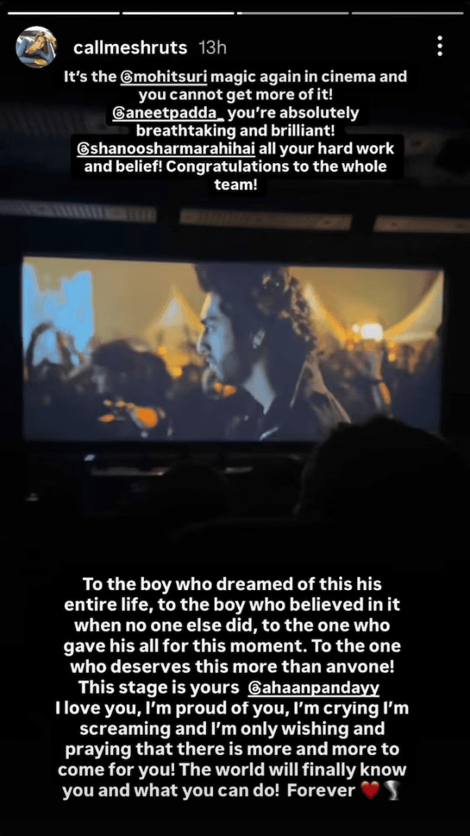 Saiyaara: मोहित सूरी की ओर से निर्देशित फिल्म सैयारा से अहान पांडे और अनीत पड्डा ने बॉलीवुड में डेब्यू किया है. समीक्षकों ने फिल्म को अच्छे रिव्यूज दिए. फिल्म ने बॉक्स ऑफिस पर लगभग चार दिन में 100 करोड़ रुपये का आंकड़ा पार कर लिया. एक लंबे समय के बाद दो नये कलाकारों की मूवी बॉक्स ऑफिस पर धूम मचा रही है. इस बीच अहान की रूमर्ड गर्लफ्रेंड श्रुति चौहान ने मूवी का रिव्यू किया है. आइए आपको बताते हैं श्रुति के बारे में.