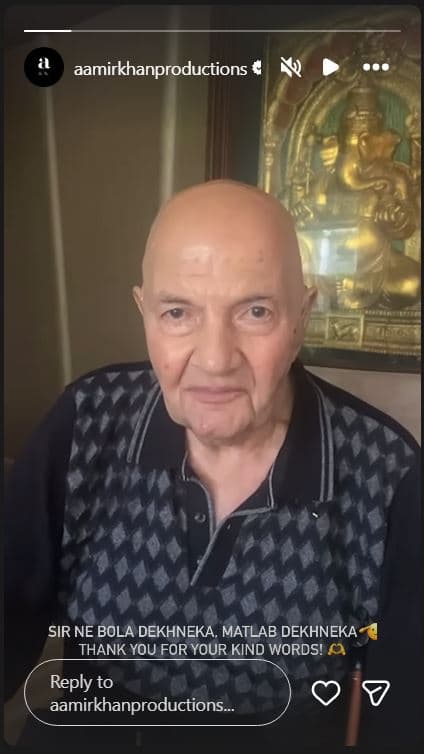 आमिर खान प्रोडक्शंस ने अपनी इंस्टाग्राम स्टोरीज पर प्रेम चोपड़ा का वीडियो शेयर करते हुए लिखा, “आमिर मैंने अभी-अभी ‘सितारे जमीन पर‘ देखी और मुझे तुम पर बहुत गर्व है…. बिल्कुल शानदार. किसी में भी ऐसी फिल्म बनाने की हिम्मत नहीं हो सकती और यूट्यूब पर आवाज और साउंड बहुत शानदार है. हम सब कुछ बहुत साफ देख और समझ सकते थे… मेरी शुभकामनाएं. अपना ख्याल रखना और भगवान तुम्हें आशीर्वाद दे आमिर, तुम बहुत अच्छे इंसान हो.”