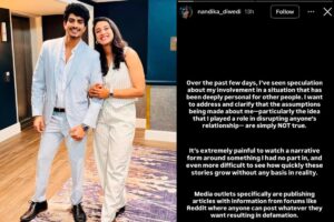 “पिछले कुछ दिनों से मेरे बारे में जो गलत धारणाएं बनाई जा रही हैं, वे पूरी तरह झूठी हैं. यह कहना कि मैंने किसी के रिश्ते को खराब किया, बिल्कुल असत्य है.”