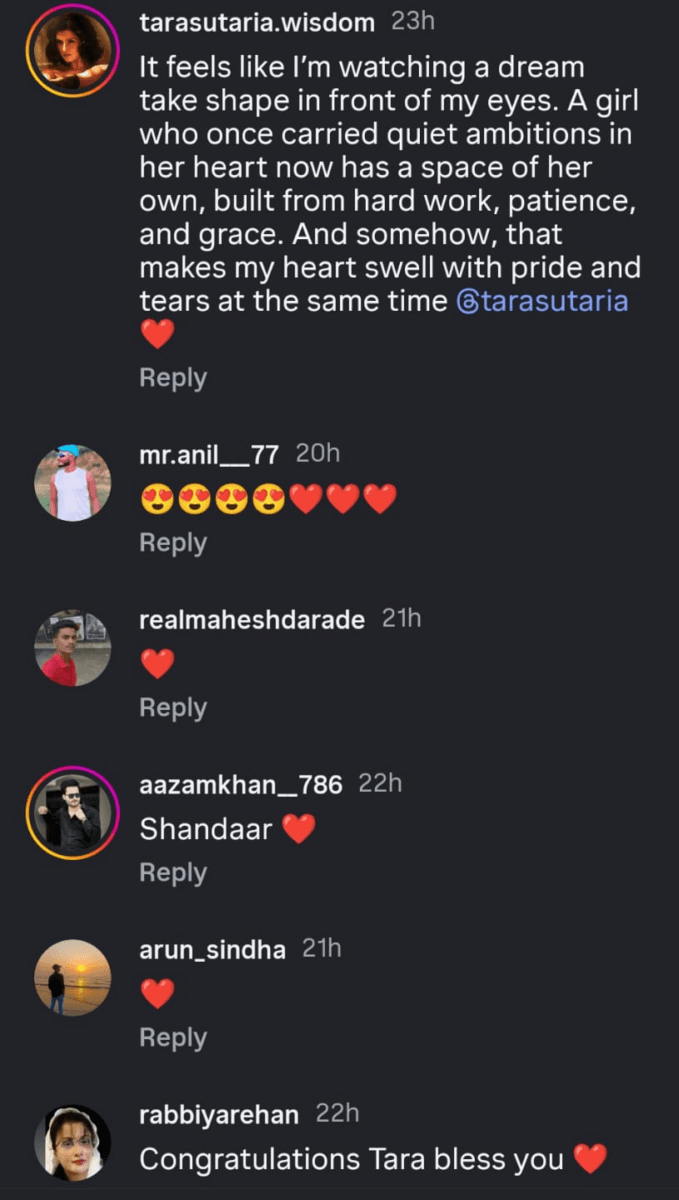 अपने बॉयफ्रेंड वीर पहारिया से अलग होने के बाद तारा ने अपनी जिंदगी में खुद पर फोकस करना शुरू किया. इस नए घर ने उन्हें न सिर्फ एक शांत और आरामदायक जगह दी, बल्कि अपनी पर्सनल लाइफ को रीसेट करने और पॉजिटिव एनर्जी पाने का मौका भी दिया है. एक्ट्रेस ने अपने पोस्ट के कैप्शन में लिखा है “नई शुरुआत के लिए मेरे पहले घर में ढेर सारी खुशियाँ और प्यार के लिए, और 2026 को खुले दिल से स्वागत करने के लिए” .