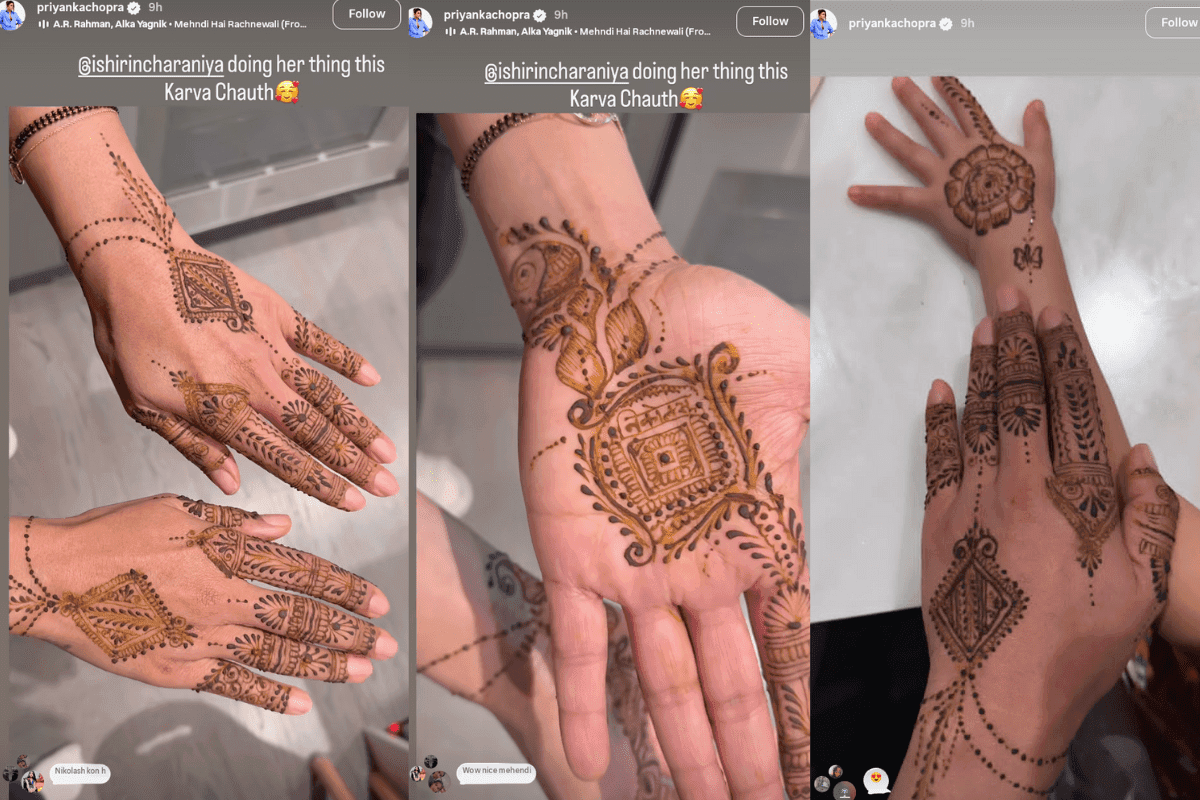 Priyanka Chopra: करवाचौथ पर प्रियंका चोपड़ा का दिखा देसी अंदाज, अमेरिका में सजाई निक जोनस के नाम की मेंहदी, देखें तस्वीरें