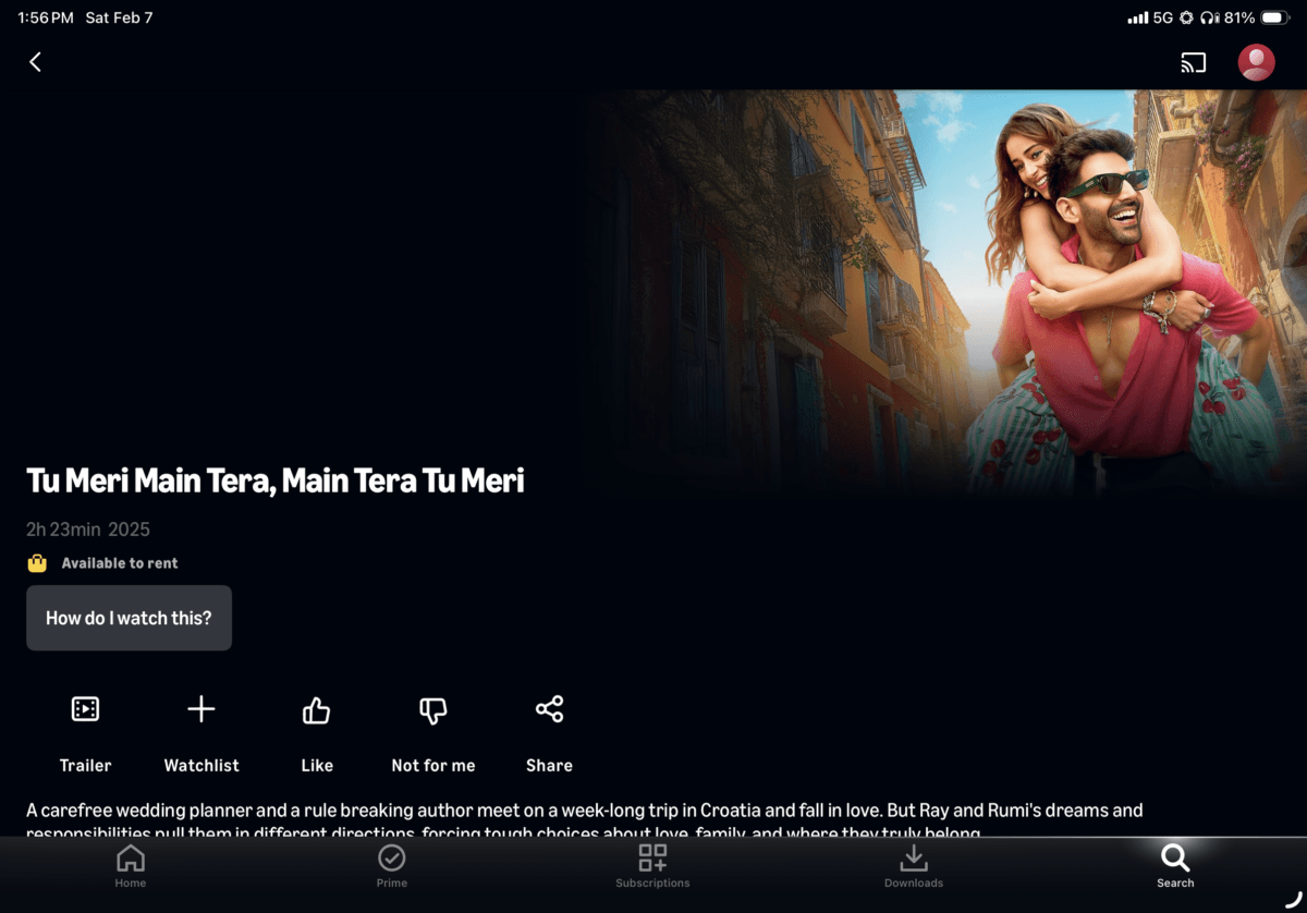 ‘तू मेरी मैं तेरा मैं तेरा तू मेरी’ अमेजन प्राइम वीडियो पर रेंट मॉडल पर रखी गई है, यानी दर्शकों को इसे देखने के लिए 349 रुपये चुकाने होंगे. दरअसल, अमेजन प्राइम वीडियो अक्सर कई फिल्मों को पहले रेंट पर रखता है और फिर कुछ समय बाद सब्सक्राइबर्स के लिए मुफ्त स्ट्रीमिंग में शामिल किया जाता है.
