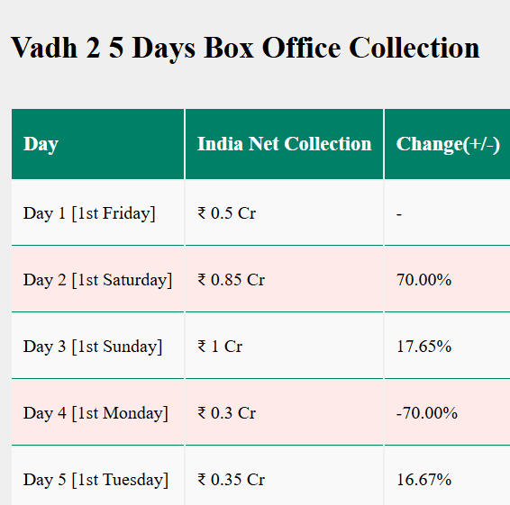 फिल्म की टीम को अब आने वाले वीकेंड से उम्मीद है.अगर शनिवार और रविवार को दर्शकों की संख्या बढ़ती है, तो कलेक्शन में सुधार देखने को मिल सकता है. फिलहाल ‘वध 2’ का सफर स्थिर लेकिन धीमी चाल से आगे बढ़ रहा है.