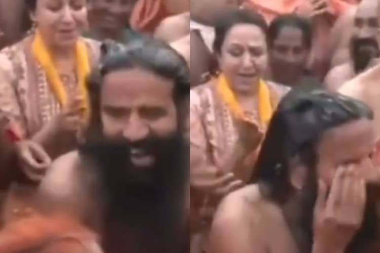 WATCH: प्रयागराज के महाकुंभ में देश-विदेश से श्रद्धालु संगम में डुबकी लगाने पहुंच रहे हैं. यहां बाबा रामदेव और हेमा मालिनी भी त्रिवेणी संगम पर पवित्र स्नान करने पहुंची. उन्होंने बुधवार को मौनी अमावस के मौके पर गंगा नदी में डुबकी लगाई. इसी बीच कुछ ऐसा होता है कि बॉलीवुड एक्ट्रेस और भारतीय जनता पार्टी की सांसद हेमा मालिनी बाबा रामदेव को देख जोर-जोर से ठहाके लगाने लगती हैं. इसका वीडियो अब सोशल मीडिया पर तेजी से वायरल हो रहा है. वीडियो की शुरुआत में बाबा रामदेव संगम में डुबकी लगा रहे हैं और उन्हीं से कुछ दुरी पर हेमा मालिनी खड़ी हैं. जब रामदेव डुबकी लगाकर खड़े होते हैं, तो उनके पुरे बाल पीछे खड़े हुए शख्स को छू जाते हैं, जिसे देखकर हेमा मालिनी खूब हंसने लगती हैं. हेमा मालिनी को देख बाबा रामदेव भी अपनी हंसी रोक नहीं पाते हैं. ऐसे में अब इस मजेदार वीडियो पर फैंस लगातार अपनी प्रतिक्रिया दे रहे हैं.
