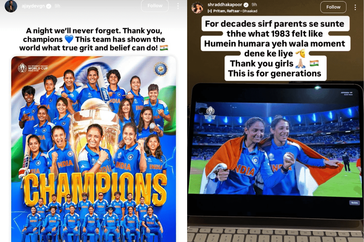 Women's World Cup 2025: भारत की महिला क्रिकेट टीम ने इतिहास रचते हुए 2025 का वर्ल्ड कप अपने नाम कर लिया. मुंबई के डीवाई पाटिल स्टेडियम में हुई इस जीत के बाद पूरा देश जश्न में डूब गया. बॉलीवुड के कई सितारों ने भी तस्वीरें शेयर करते हुए इस जीत का जश्न मनाया और सभी खिलाड़ियों को बधाई दी.