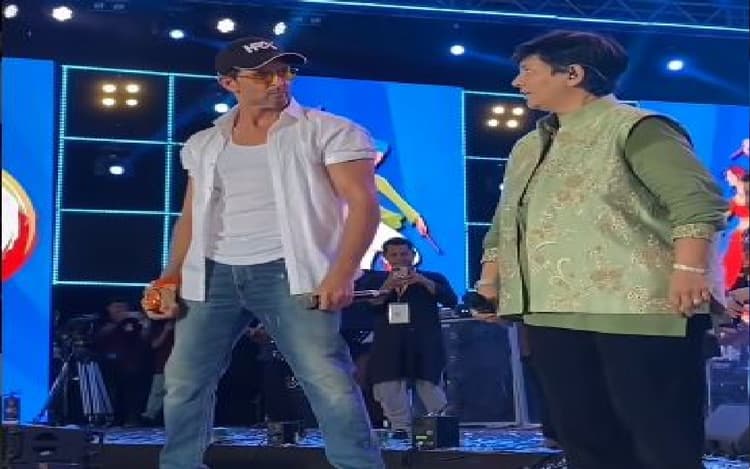 बॉलीवुड एक्टर ऋतिक रोशन (Hrithik Roshan) इन-दिनों अपनी फिल्म ‘विक्रम वेधा’ (Vikram Vedha) को लेकर सुर्खियों में बने हुए है. ये फिल्म 30 सितंबर को सिनेमाघरों में रिलीज हुई है. फिल्म को ऑडियंस का ढेर सारा प्यार मिल रहा है. इसी बीच अब ऋतिक रोशन को फाल्गुनी पाठक (Falguni Pathak) के साथ गरबा करते हुए देखा जा सकता है. दोनों स्टार्स का ये डांस सोशल मीडिया पर तेजी से वायरल हो रहा है. वीडियो में ऋतिक का नवरात्रि जोश और उत्साह फैंस को काफी ज्यादा पसंद आ रहा है. एक्टर स्टेज पर काफी स्टाइलिश लग रहे हैं.