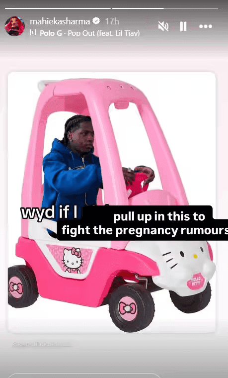 माहिका ने यहीं बात खत्म नहीं की. अगली पोस्ट में उन्होंने मजाकिया लहजे में लिखा, “अब लगता है जल्द ही मेरी प्रेग्नेंसी की खबरें भी वायरल हो जाएंगी.” साथ में उन्होंने एक टॉय कार चलाते हुए आदमी की तस्वीर भी शेयर की. दरअसल, ये सगाई वाली अफवाह तब तेज हुई जब हार्दिक ने सोशल मीडिया पर कुछ रोमांटिक तस्वीरें और एक वीडियो शेयर किया था. उन तस्वीरों में दोनों ट्रेडिशनल कपड़ों में थे और माहिका की उंगली में डायमंड रिंग साफ दिख रही थी. इसके अलावा एक वीडियो भी वायरल हुआ, जिसमें दोनों किसी निजी पूजा में शामिल दिखाई दे रहे थे. शादी जैसा माहौल देखकर लोगों ने बिना इंतजार किए नतीजा निकाल लिया कि दोनों ने रिंग एक्सचेंज कर ली है.