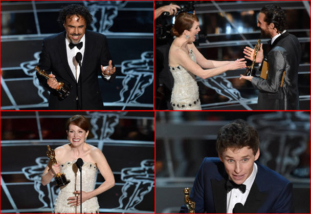 ‘द थियरी ऑफ एवरीथींग’ में अपनी भूमिका के लिए एडी रेडमायने ने सर्वश्रेष्ठ अभिनेता का ऑस्कर जीता है.वहीं जुलिआन मूर ने ‘स्टिल एलिस’ में अपनी भूमिका के लिए ऑस्कर में सर्वश्रेष्ठ अदाकारा का पुरस्कार जीता है. रिचर्ड लिंकलेटर की फिल्म ‘बॉयहुड’ में तलाकशुदा मां के किरदार में जान डालने के लिए पैटरीशिया आर्केट को सर्वश्रेष्ठ सहनायिका के ऑस्कर पुरस्कार से नवाजा गया.