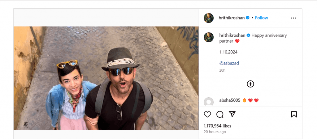 Hrithik Roshan: क्या ऋतिक रोशन और सबा आजान की हो गई शादी? कपल ने मनाई एनिवर्सरी, साथ में शेयर किया तस्वीर