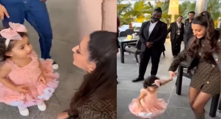 नोरा फतेही और इस क्यूट बच्ची का वीडियो देखकर आपका दिल खुश हो जाएगा. वीडियो में नोरा उस बच्ची को अपना नाम बताती है. वो बच्ची पिंक फ्रॉक में बहुत प्यारी दिख रही है. उसके बाद नोरा उसके साथ डांस मेरी रानी पर सॉन्ग पर डांस करती दिखती है. वो बच्ची एक्ट्रेस को देखकर धीरे-धीरे से डांस करती है. फिर नोरा उसे गोद में उठाकर उसपर लाड़-प्यार करती है.